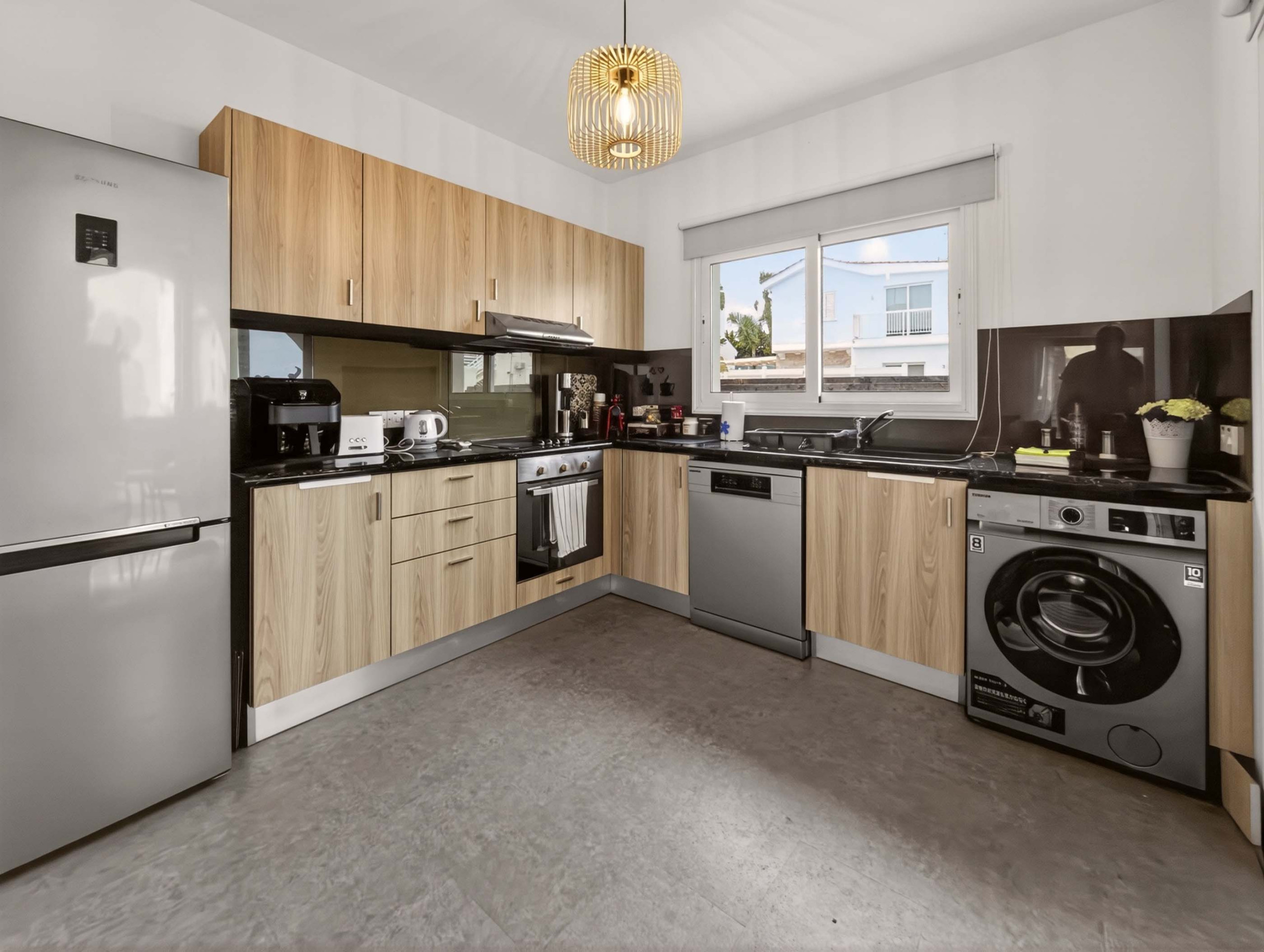 Im Inneren wurde die Villa sorgfältig modernisiert und ist vollständig ausgestattet für einen komfortablen Aufenthalt. Die Küche ist mit allem ausgestattet, was für einen einfachen Selbstversorgungsurlaub erforderlich ist, einschließlich Geschirrspüler, Waschmaschine, Heißluftfritteuse, Kaffeemaschine und allen Essentials zur Zubereitung von Mahlzeiten zu Hause. Die Wohnräume sind so gestaltet, dass sie sich einladend und praktisch anfühlen, was es leicht macht, sich einzuleben und Ihre Zeit im Inneren zu genießen.
