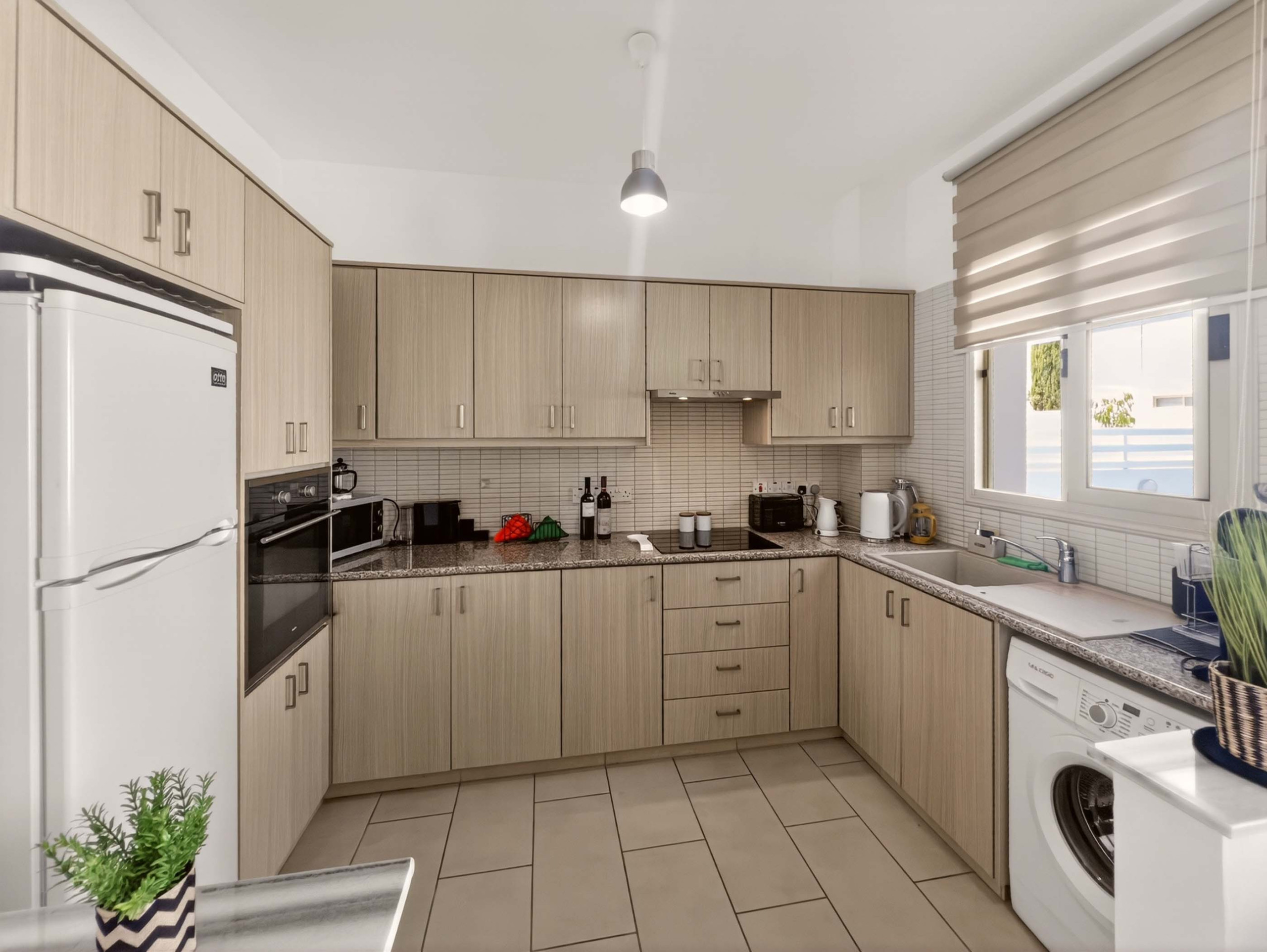 Die Villa verfügt über drei einladende Doppelschlafzimmer und bietet bequem Platz für bis zu sechs Gäste. Es gibt zwei Badezimmer, eines mit Dusche und eines mit Badewanne, was zusätzliche Bequemlichkeit für Familien oder Gruppen bietet. Die voll ausgestattete Küche umfasst moderne Essentials wie eine Spülmaschine, Waschmaschine, Mikrowelle und Hochgeschwindigkeits-Glasfaserinternet, was einen reibungslosen und stressfreien Aufenthalt gewährleistet.