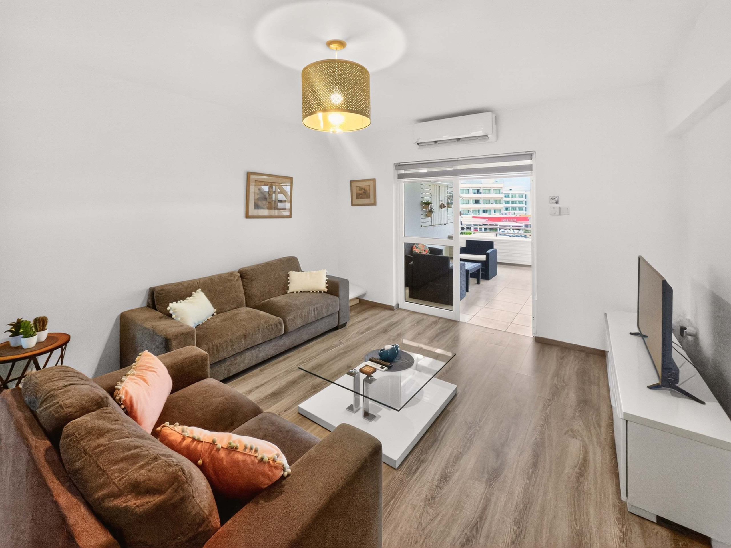 L'appartement de Sofia ne pourrait pas être mieux situé – juste sur l'animée Protaras Strip ! Vous êtes à quelques pas de restaurants populaires, de bars de plage, de magasins et de vie nocturne, et à seulement 4 minutes de marche des plages les plus appréciées de l'île, dont la baie du Figuier et la plage de Vryssi. Que vous ayez envie de journées à la plage ou de soirées, tout est à votre porte.