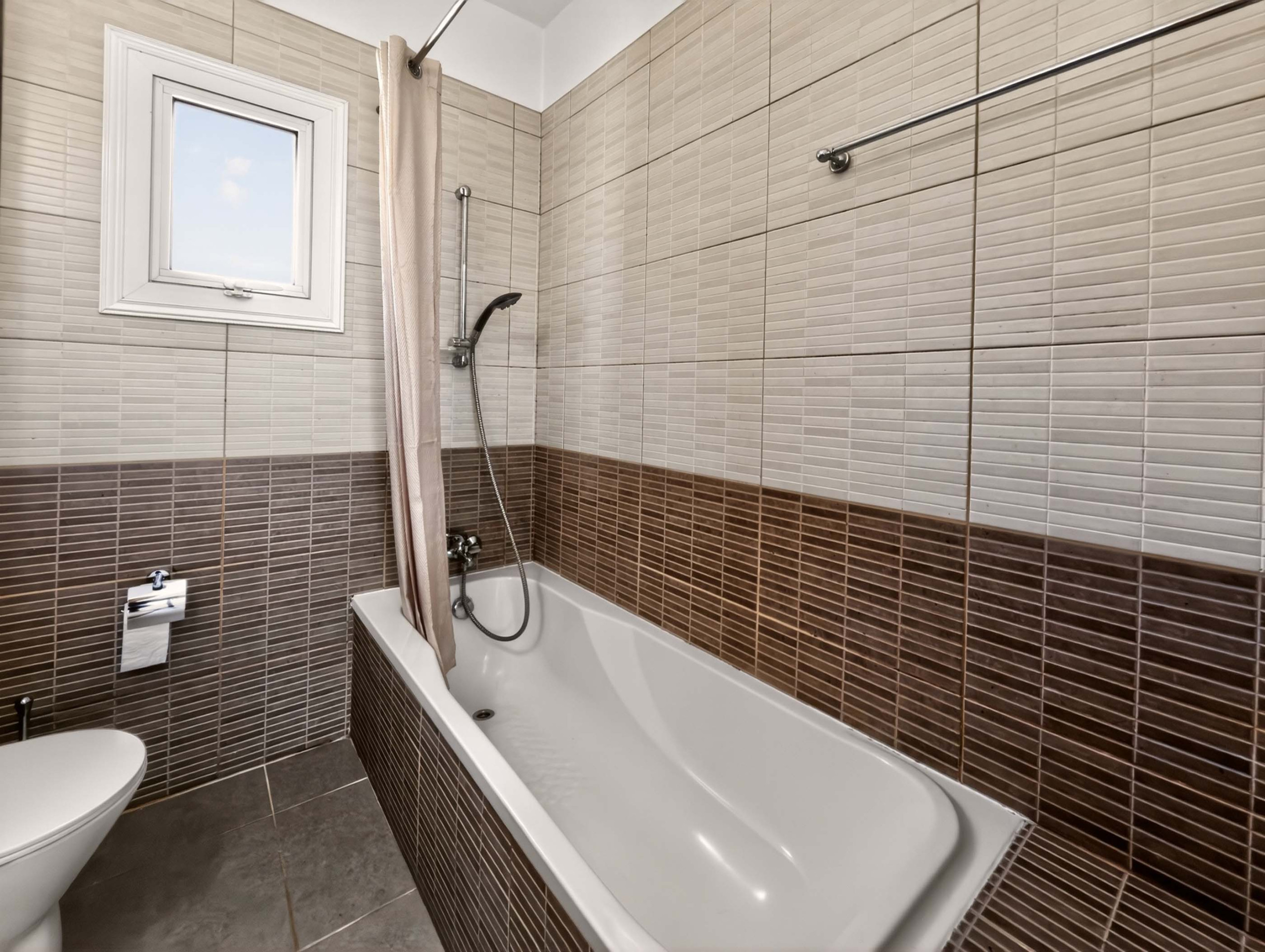 Les arrangements de couchage offrent à la fois confort et intimité. Une chambre dispose de deux lits simples, sa propre salle de bains attenante et d'une TV, ce qui en fait une excellente option pour les enfants ou les amis voyageant ensemble. La deuxième chambre comprend un lit king size, une TV et un balcon privé avec vue sur la mer, créant un cadre calme et reposant. Cette chambre a également accès à une salle de bains avec baignoire, parfaite pour se détendre après une journée dehors.