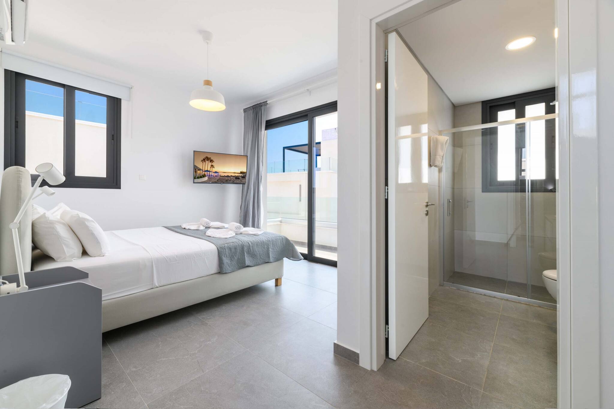La villa dispone di tre camere da letto matrimoniali accoglienti e può ospitare comodamente fino a sei ospiti. Ci sono due bagni, uno con doccia e uno con vasca, che offrono un'ulteriore comodità per famiglie o gruppi. La cucina completamente attrezzata include elementi essenziali moderni come lavastoviglie, lavatrice, forno a microonde e internet in fibra ad alta velocità, garantendo un soggiorno agevole e senza problemi.