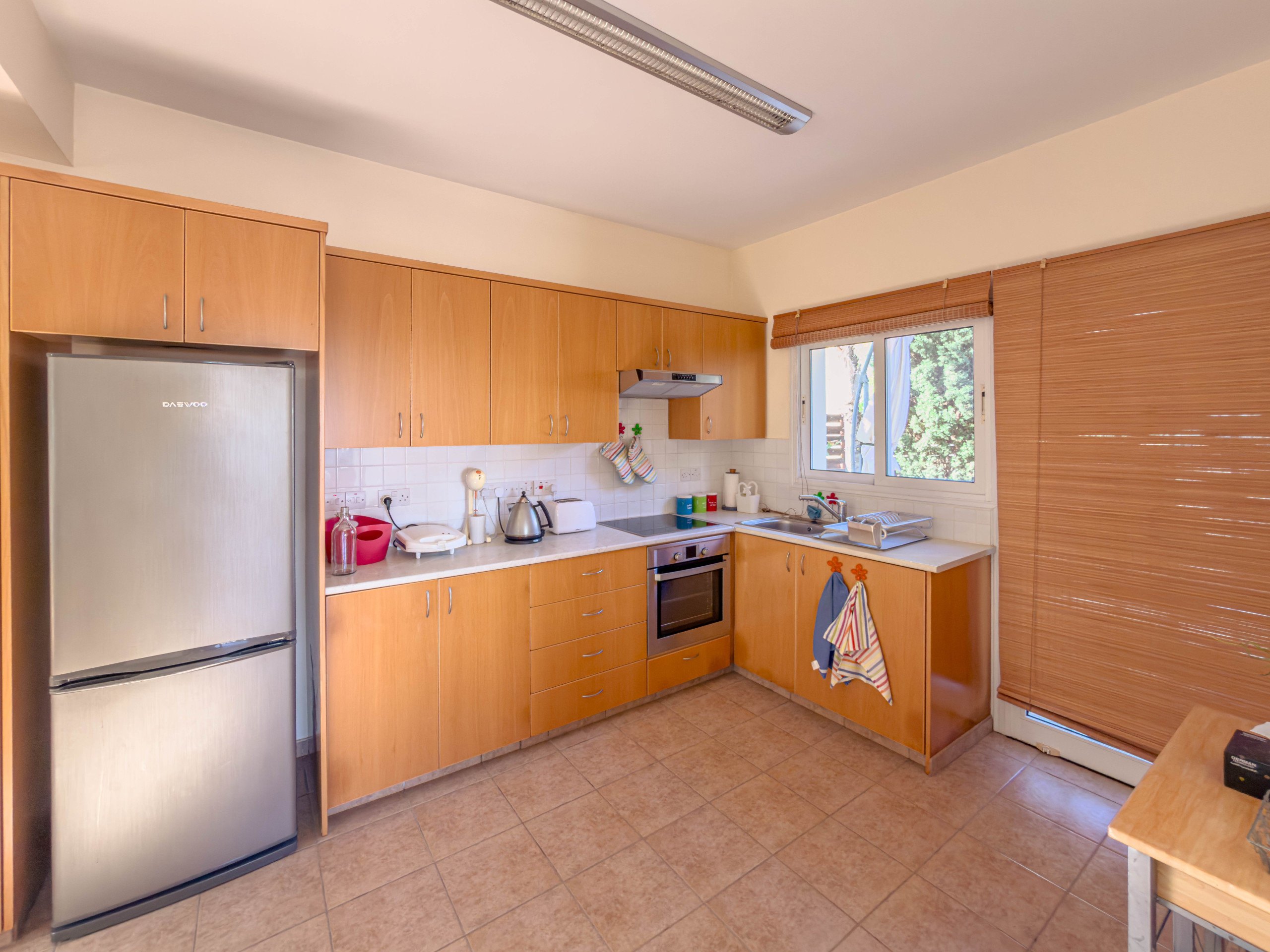 La villa è spaziosa e ben organizzata, rendendola ideale per famiglie o gruppi. L'area living open space crea un'atmosfera calda e accogliente, con sedute comode, una TV a schermo piatto e canali satellitari che offrono una vasta selezione di programmazione internazionale. La cucina moderna è completamente attrezzata con elettrodomestici di qualità, top in marmo e abbondante spazio di archiviazione, mentre l'area dining può comodamente ospitare sei ospiti.