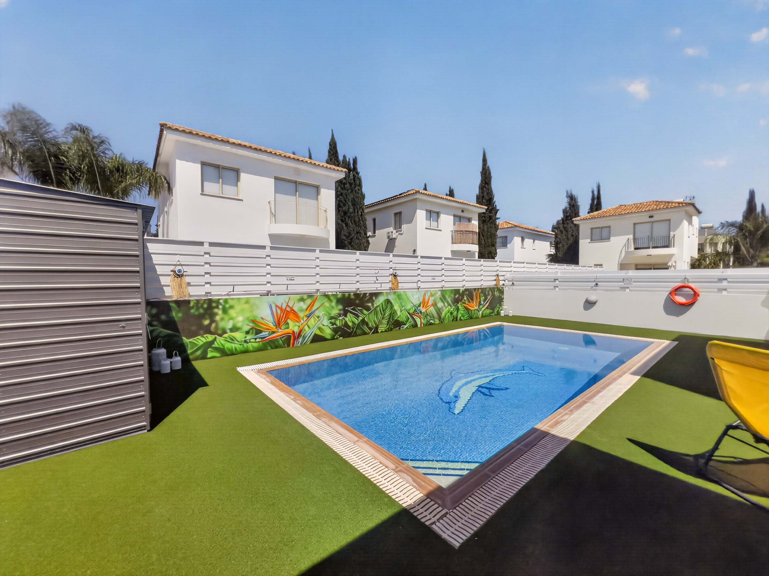 La villa a Protaras ha 3 camera(e) da letto e capacità per 6 persone. Alloggio di 180 m². Ha giardino, giardino arredato, lavatrice, barbecue, ferro da stiro, accesso internet (wifi), asciugacapelli, balconi, zona infantile, aria condizionata in tutte la stanze, piscina privata, parcheggio all'aperto in in struttura, 1 Televisore, tv satellitare (Lingue: Spagnolo, Inglese, Tedesco, Olandese, Francese, Russo, Svedese, Norvegese).La cucina americana, elettrica, è attrezzata con frigorifero, microonde, forno, stoviglie/posate, utensili da cucina, caffettiera, bollitore e fornello.