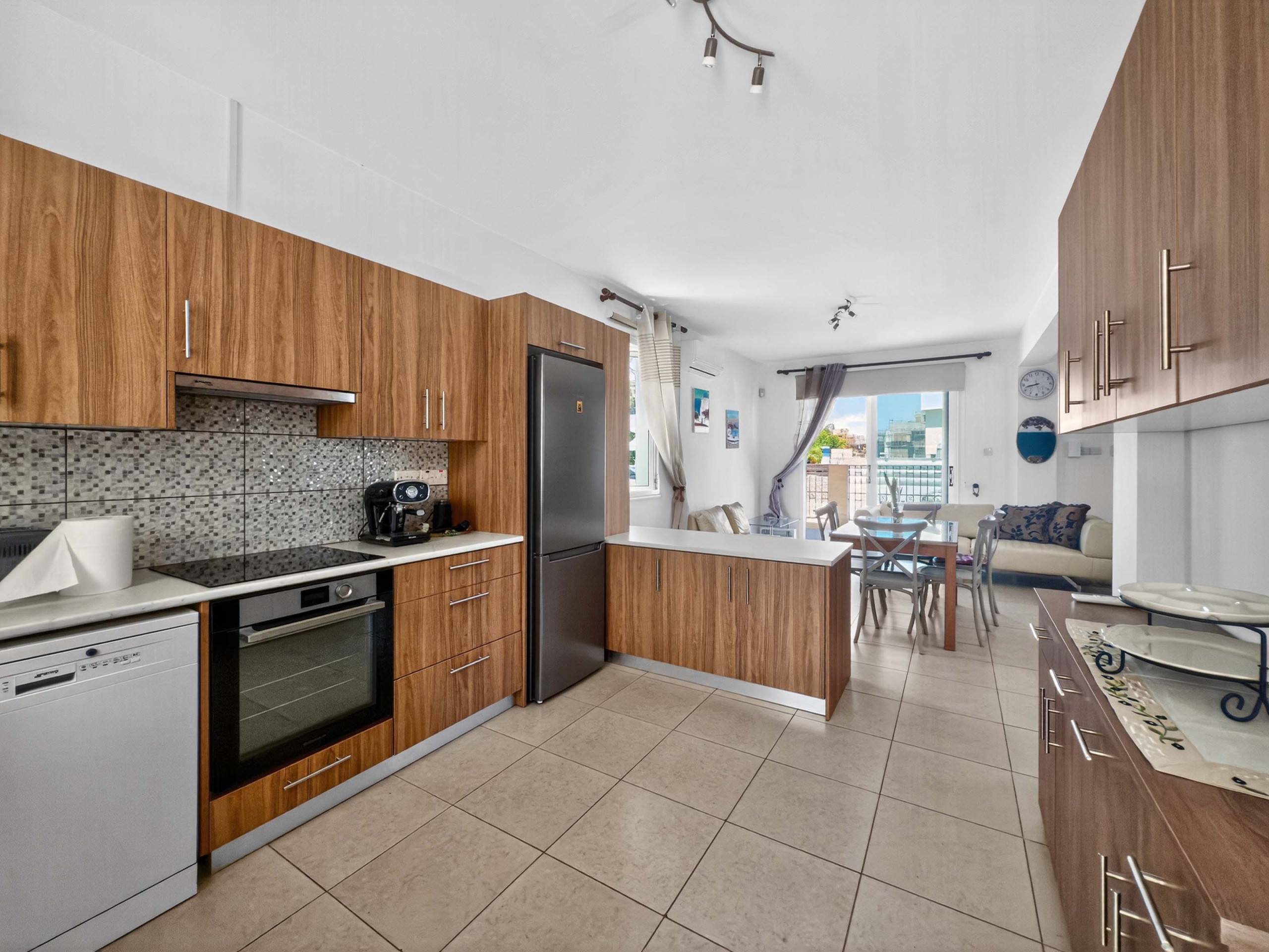 Innvendig vil du finne en lys, åpen stue- og spisestue, sammen med et fullt utstyrt kjøkken som gjør matlaging enkelt. Enten du nyter en rolig frokost før stranden eller en avslappet middag hjemme, er rommet designet for enkel feriebolig.