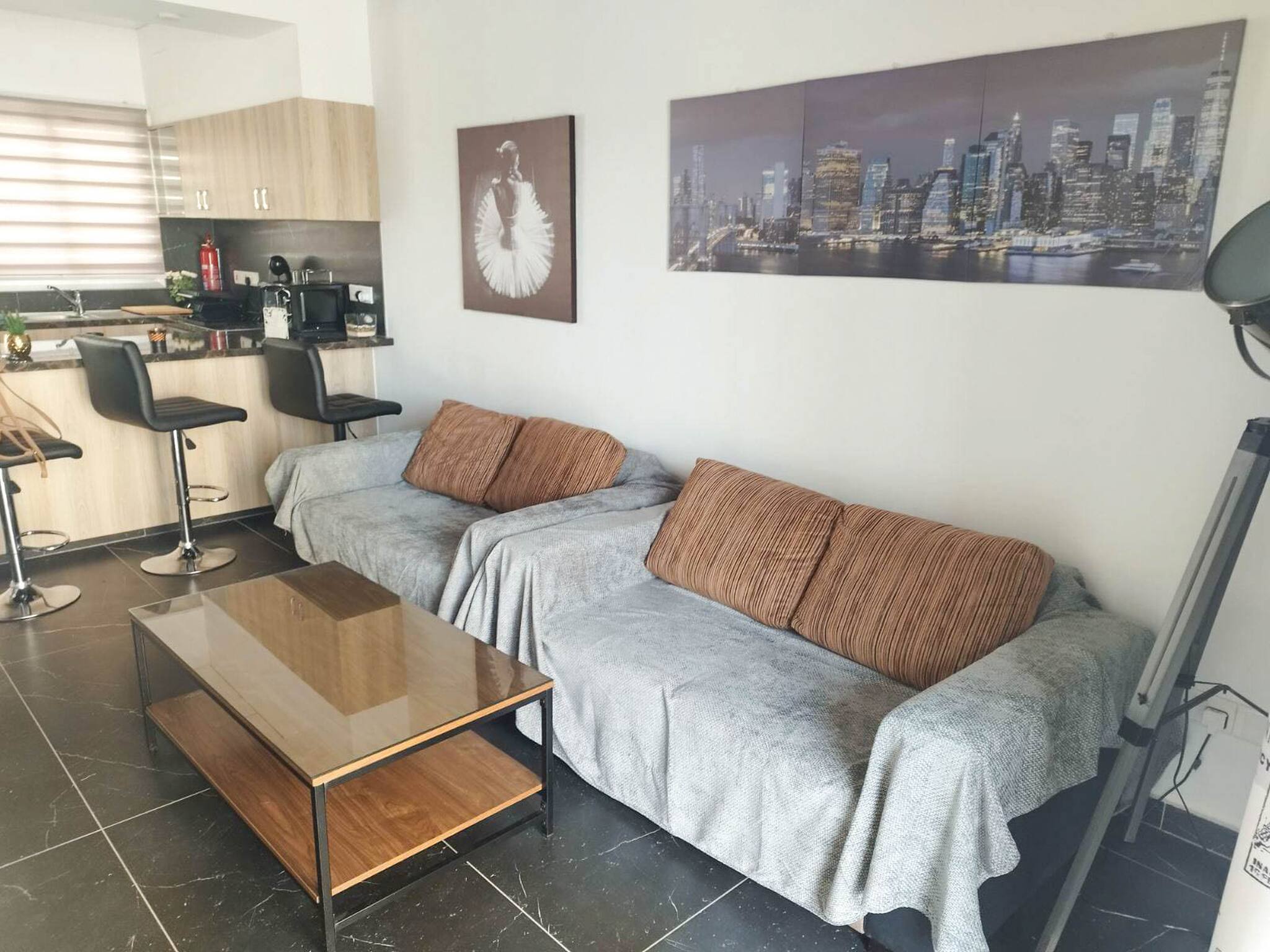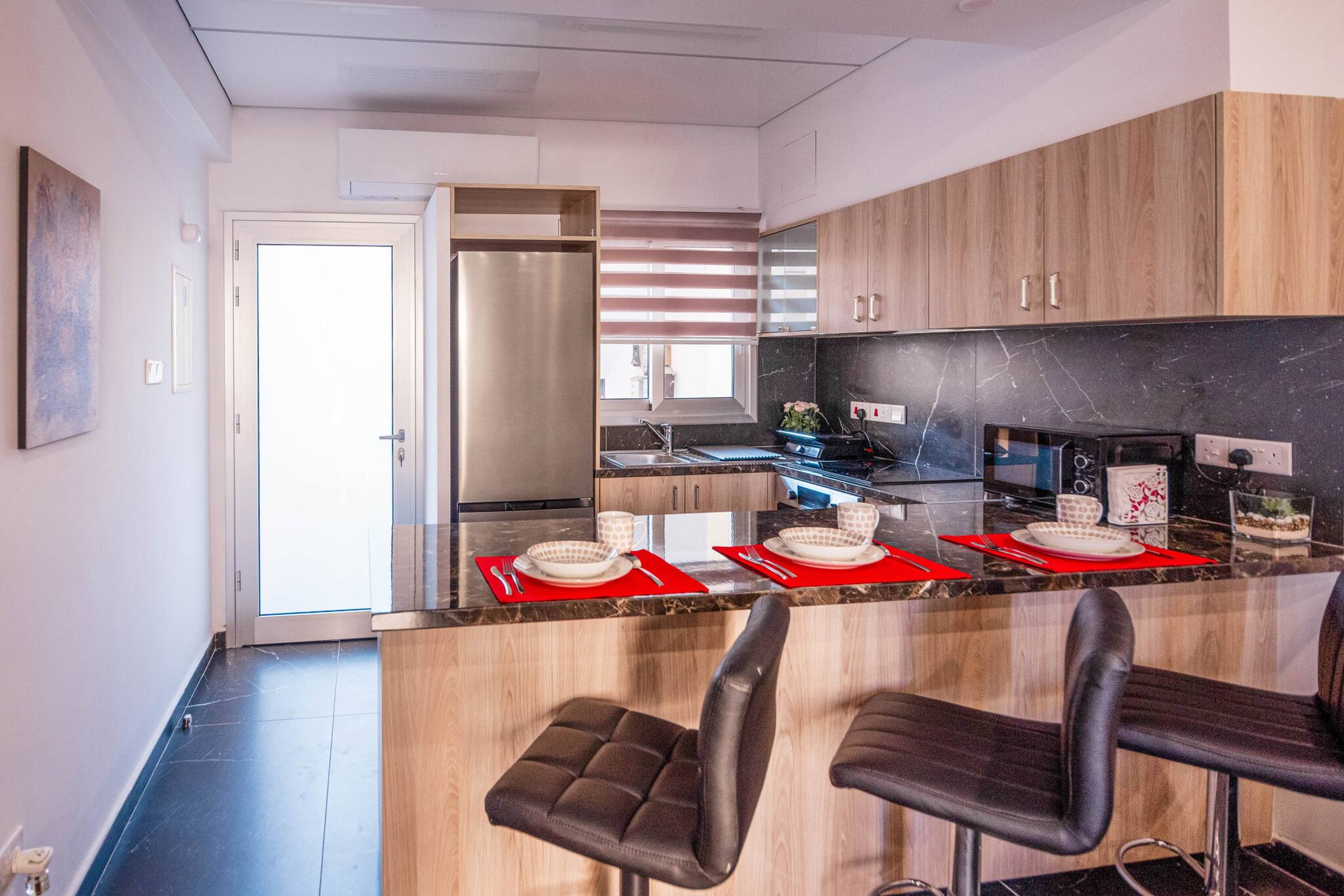 The entire apartment is designed to ensure a comfortable and relaxing stay, complete with air conditioning and heating in every room.