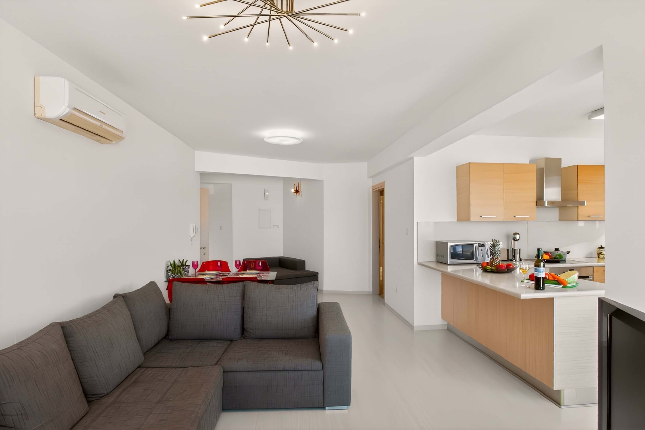 Overlooking what is widely regarded as one of Europe’s finest beaches, this exceptional three bedroom apartment offers front row views of the Mediterranean and immediate access to the famous Protaras to Pernera beachfront promenade. Morning swims, scenic walks, and sunset strolls become part of your everyday routine.