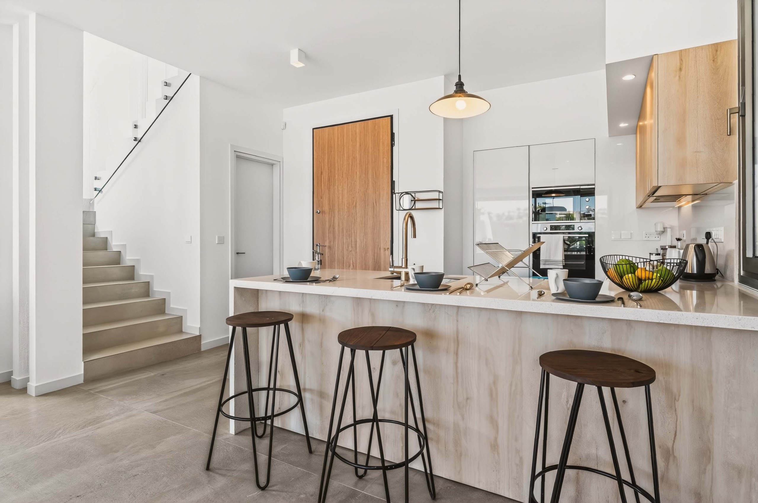 The villa features three inviting double bedrooms and comfortably accommodates up to six guests. There are two bathrooms, one with a shower and one with a bathtub, offering added convenience for families or groups. The fully equipped kitchen includes modern essentials such as a dishwasher, washing machine, microwave, and high speed fibre internet, ensuring a smooth and hassle free stay.