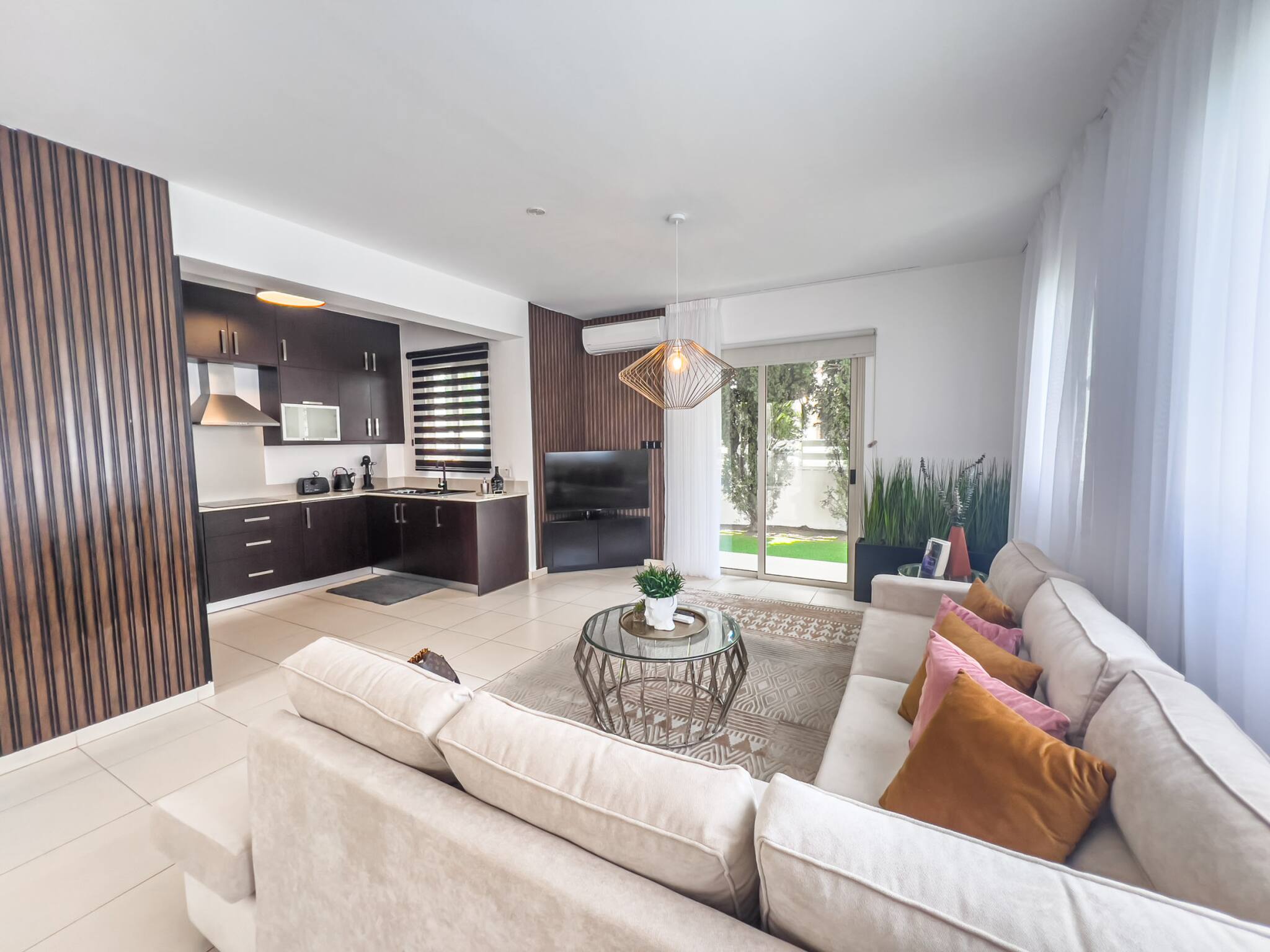 Bluebell Villa is a stylish and well-maintained 2-bedroom villa in Kapparis, just a 2-minute drive or 8-minute walk to the beach. The villa comfortably sleeps up to 5 guests, featuring a cozy living area, fully equipped kitchen, and a sunny outdoor dining space. Located just 3 minutes from Kapparis’ main strip, guests have easy access to bakeries, shops, supermarkets, and restaurants in a newly renovated, family-friendly area.