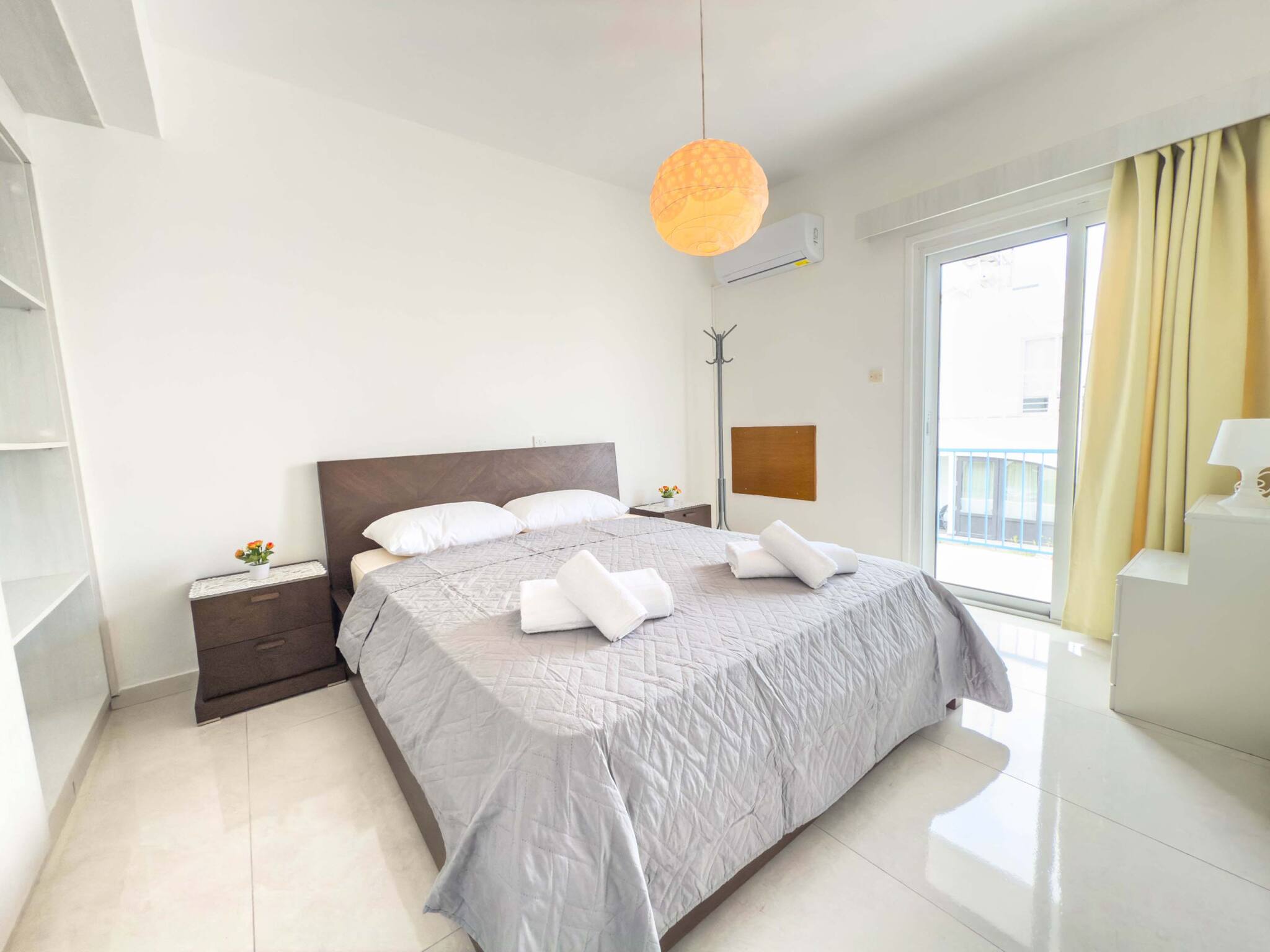 апартаменты в Ayia Napa 2 количество спален вместимостью на 4 чел. Проживание из 70 кв.м. Размещение имеет утюг, Доступ в интернет (wi-fi), Фен, Балкон, систему кондиционирования во всем помещении, закрытая парковка в этом же здании, 1 телевизор. Кухня, совмещенная с залом, оснащена электрической плитой, оборудовано холодильник, микроволновая печь, духовка, столовые приборы, кухонная утварь, кофеварка, Чайник и Плита.
