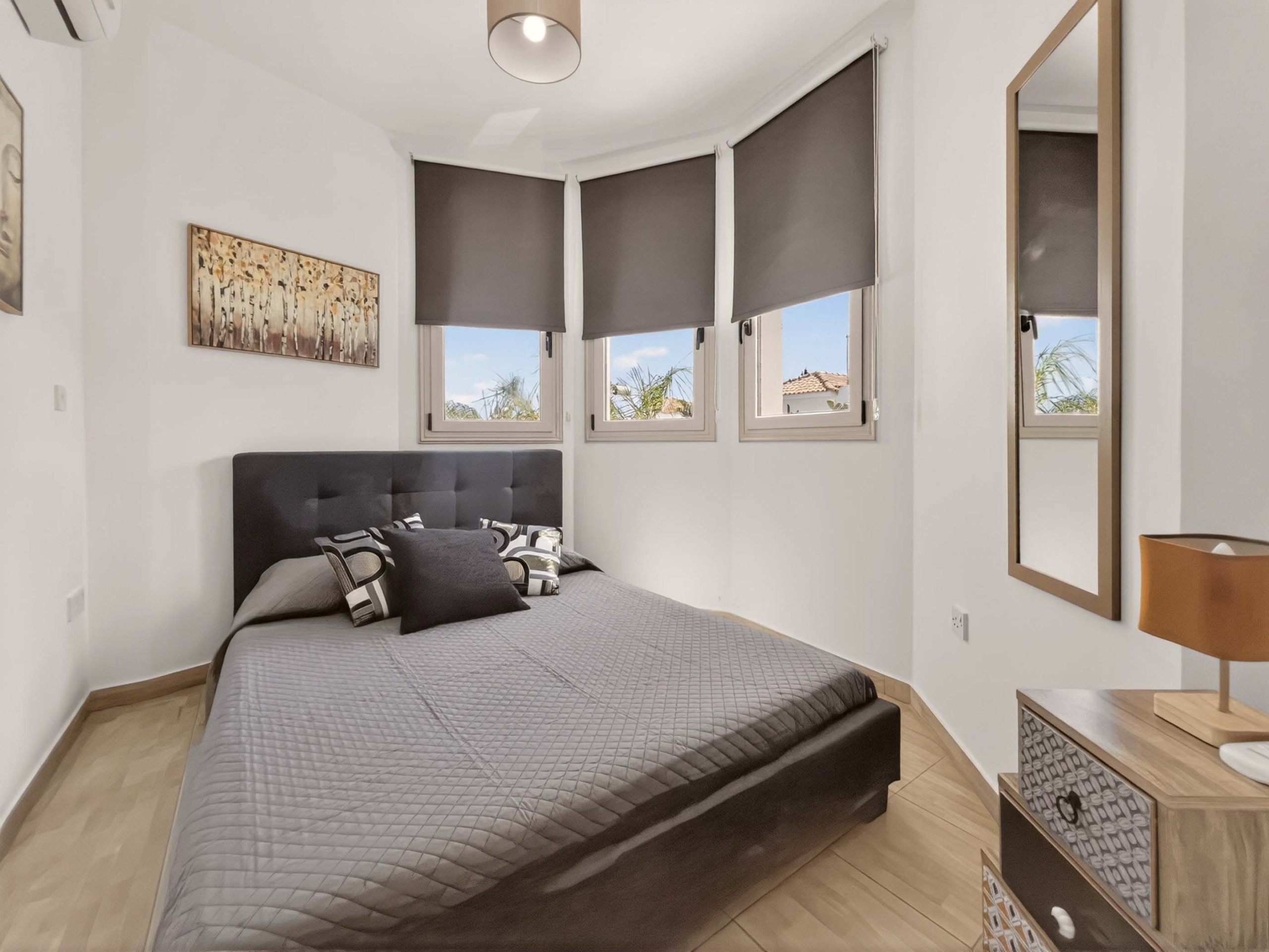 Вилла имеет три уютные двухместные спальни и комфортно размещает до шести гостей. Есть две ванные комнаты, одна с душем и одна с ванной, что обеспечивает дополнительное удобство для семей или групп. Полностью оборудованная кухня включает современные essentials, такие как посудомоечная машина, стиральная машина, микроволновая печь и высокоскоростной оптоволоконный интернет, что гарантирует беспроблемное и комфортное пребывание.