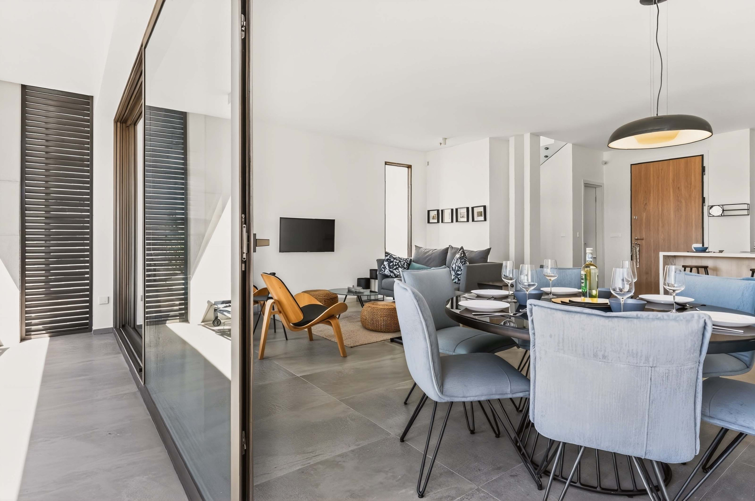 Azure Sama Villa är en modern trevåningsvilla belägen i det lugna området Kapparis, bara en kort promenad från sandstränderna och inom bekvämt räckhåll från restauranger, bagerier, caféer och lokala pubar. Belägen i samma välskötta komplex och med delvis havsutsikt erbjuder villan en lugn kustnära miljö med komfort och avskildhet. Den förvaltas stolt av ElloCyprus, vilket säkerställer uppmärksam lokal support under hela er vistelse.