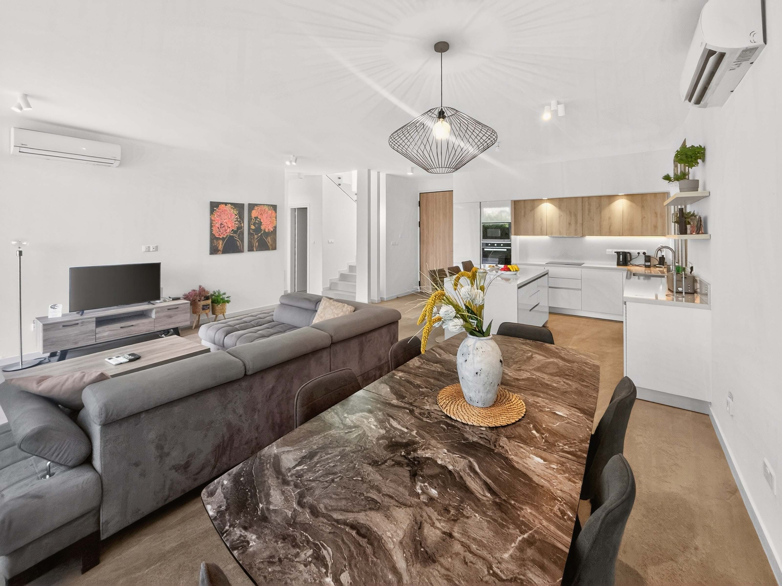 Villan rymmer bekvämt upp till sex gäster och är designad för enkel, stressfri semestervistelse. Inomhus hittar du en ljus öppen planlösning med bekväma sittplatser och en platt-TV med internationella kanaler. Det moderna, fullt utrustade köket ansluter sömlöst till matplatsen, vilket gör självhushåll enkelt och njutbart.