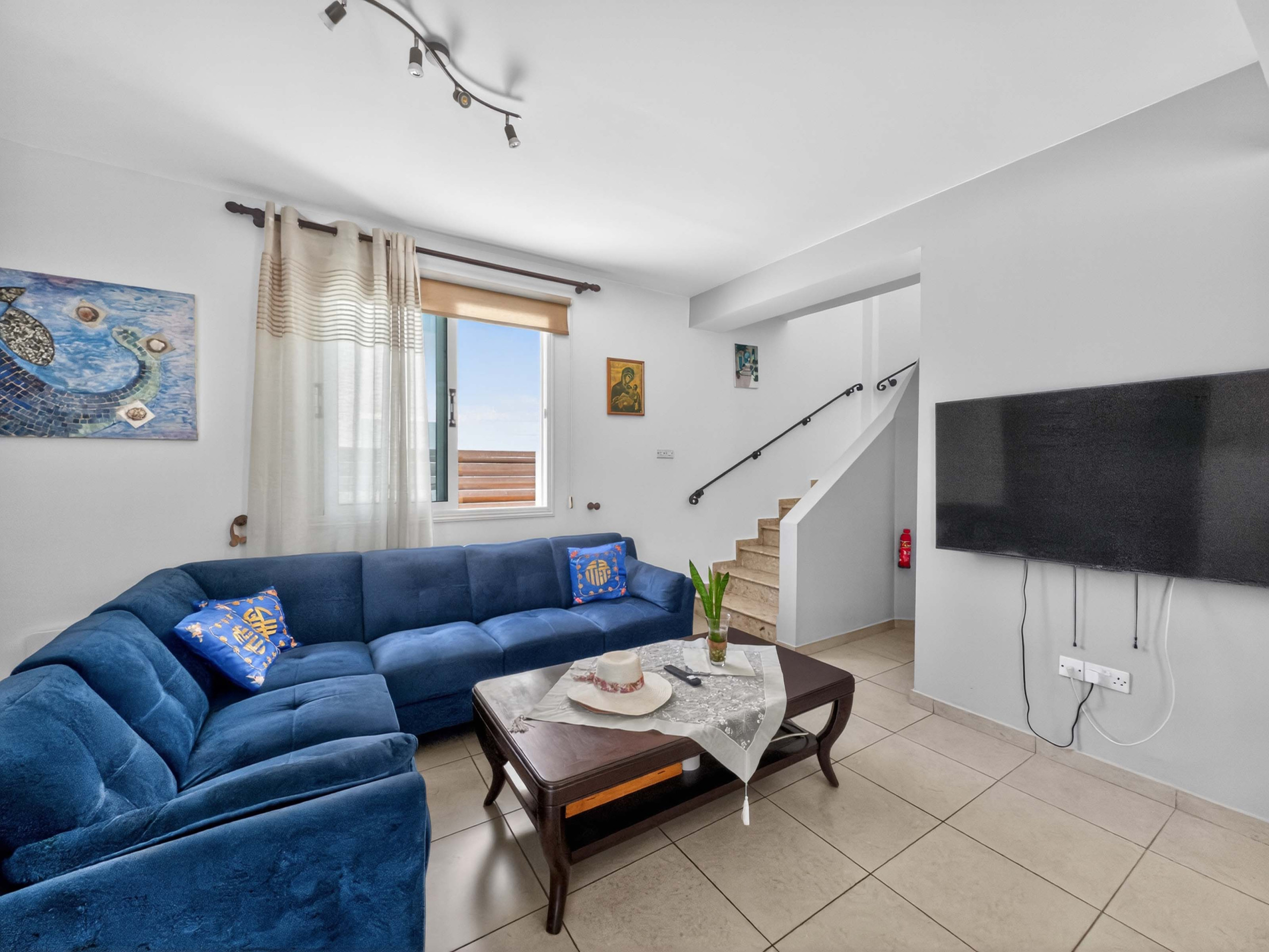 Ljus, luftig och genomtänkt, sträcker sig vardagsrum och matplats ut till en skuggad terrass med utsikt över den privata poolen. Utomhus hittar du ett täckt matområde med plats för sex personer, tillsammans med en avkopplande loungeyta, perfekt för sena frukostar, långa luncher och lugna kvällar i den cypriotiska solen.
